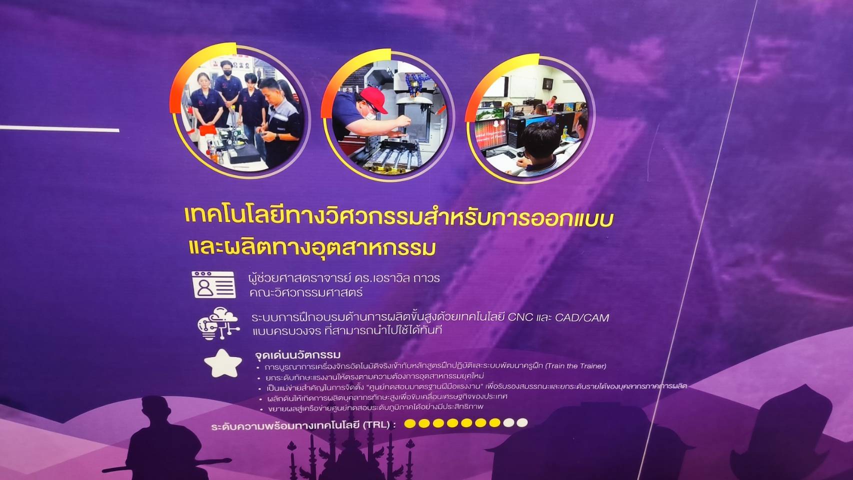 ผู้ช่วยศาสตราจารย์ ดร.เอราวิล ถาวร ได้นำเสนอผลงานของ “ศูนย์การเรียนรู้เทคโนโลยีทางวิศวกรรมสำหรับการออกแบบและผลิตทางอุตสาหกรรม (UP Engineering Technology Learning Center)” ซึ่งเป็นโครงการมุ่งพัฒนาทักษะบุคลากร (Up–Re–New Skill) ด้านการออกแบบและการผลิตทางอุตสาหกรรม เพื่อสนับสนุนภาคอุตสาหกรรมในระดับภูมิภาค โดยอาศัยการบูรณาการองค์ความรู้ด้านวิศวกรรมของคณะฯ กับความต้องการของภาคอุตสาหกรรมท้องถิ่น