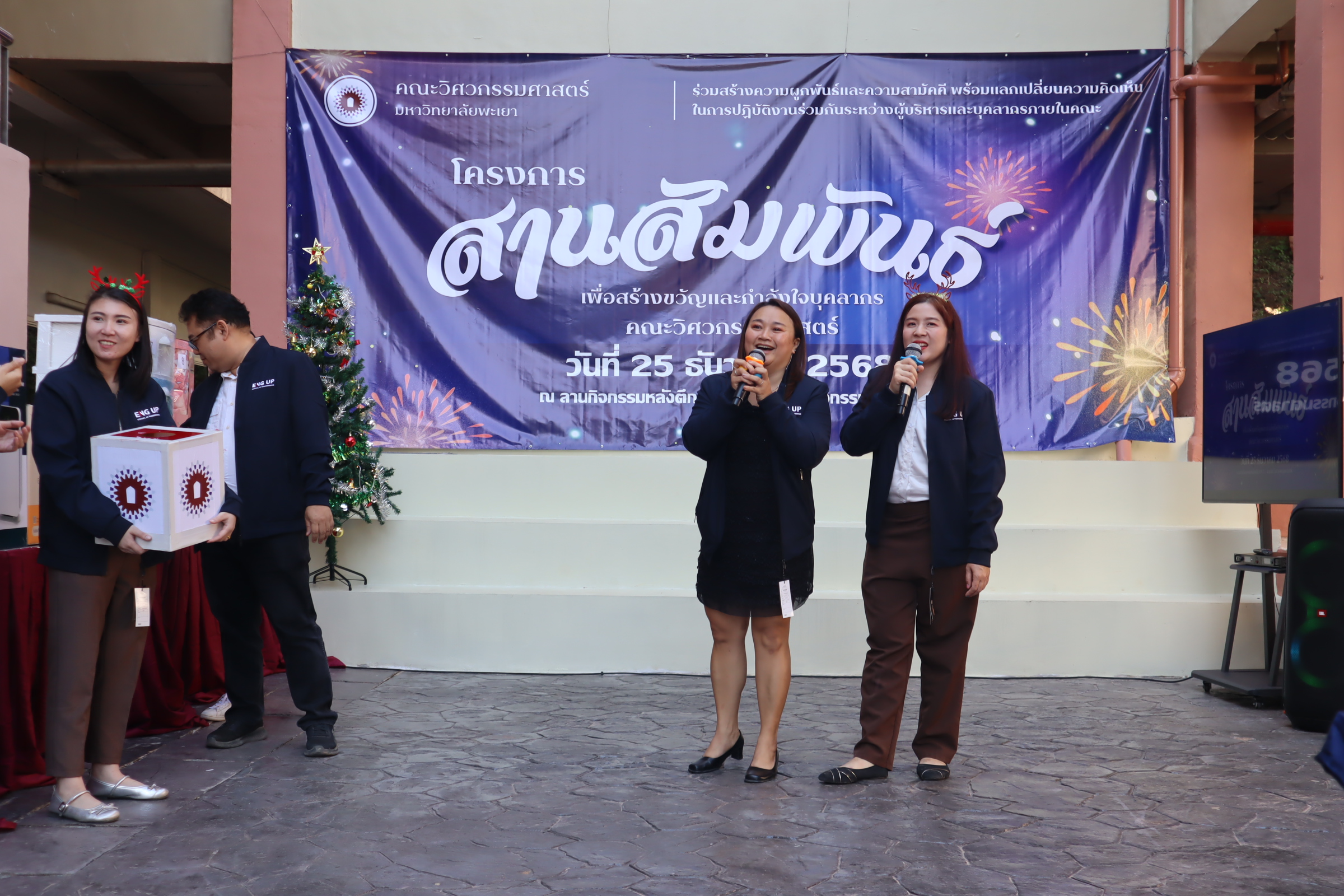 คณะวิศวกรรมศาสตร์ มหาวิทยาลัยพะเยา จัด “โครงการสานสัมพันธ์เพื่อสร้างขวัญและกำลังใจแก่บุคลากรภายในคณะวิศวกรรมศาสตร์” เพื่อเสริมสร้างความสามัคคี ความเข้าใจอันดี และพลังในการขับเคลื่อนพันธกิจของคณะ เมื่อวันพฤหัสบดีที่ 25 ธันวาคม 2568 ณ ลานกิจกรรมหลังตึก EN 3–4 คณะวิศวกรรมศาสตร์ มหาวิทยาลัยพะเยา