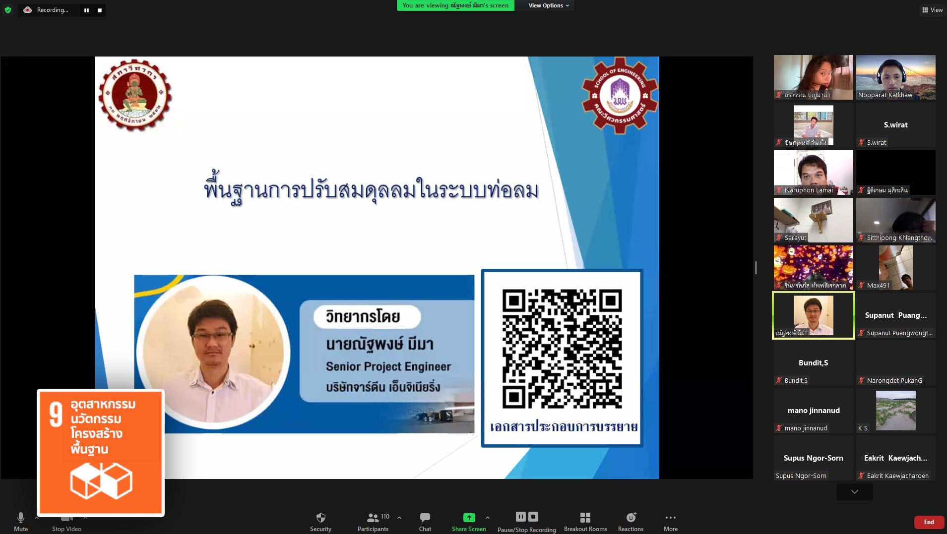 เมื่อวันที่ 31 ตุลาคม 2564 ที่ผ่านมา องค์กรแม่ข่ายสภาวิศวกร คณะวิศวกรรมศาสตร์ มหาวิทยาลัยพะเยา ได้จัดอบรมถ่ายทอดความรู้ในหัวข้อ “พื้นฐานการปรับสมดุลลมในระบบท่อลม” ผ่านสื่อออนไลน์ โดยมี ผู้ช่วยศาสตราจารย์ ดร.นพรัตน์ เกตุขาว อาจารย์ประจำหลักสูตรวิศวกรรมศาสตรบัณฑิต สาขาวิชาวิศวกรรมเครื่องกล และ คุณณัฐพงษ์ มีมา Senior Project Engineer บริษัทจาร์ดีน เอ็นจิเนียริ่ง ร่วมเป็นวิทยากร การอบรมในครั้งนี้ได้รับความสนใจจากวิศวกรและบุคคลทั่วไปจำนวนมากถึง 140 คน ซึ่งผู้เข้าร่วมจะได้รับการถ่ายทอดทฤษฎีและเทคนิคเกี่ยวกับการปรับสมดุลในระบบปรับอากาศซึ่งเป็นขั้นตอนที่สำคัญในงานติดตั้งระบบปรับอากาศ รวมถึงทำความรู้จักกับอุปกรณ์ที่จำเป็นในการปรับสมดุลลมในระบบปรับอากาศ ทั้งนี้ ผู้ที่ได้รับอบรมจะได้รับหน่วยความรู้การพัฒนาวิชาชีพวิศวกรรมต่อเนื่อง (PDU) จำนวน 2.25 หน่วย
