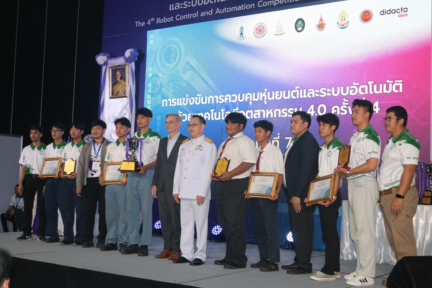 คณะวิศวกรรมศาสตร์ มหาวิทยาลัยพะเยา นำโดย ผู้ช่วยศาสตราจารย์ ดร.ธนกานต์ สวนกัน พร้อมด้วย อาจารย์อโณทัย กล้าการขาย เป็นผู้แทนนำนิสิตเข้าร่วม “การแข่งขันการควบคุมหุ่นยนต์และระบบอัตโนมัติด้วยเทคโนโลยีอุตสาหกรรม 4.0 ครั้งที่ 4” ชิงถ้วยพระราชทานสมเด็จพระกนิษฐาธิราชเจ้า กรมสมเด็จพระเทพรัตนราชสุดา ฯ สยามบรมราชกุมารี ระหว่างวันที่ 15 – 17 ตุลาคม 2568 ณ ศูนย์นิทรรศการและการประชุมไบเทค (BITEC) Hall EH 99 จังหวัดกรุงเทพมหานคร จัดโดย สำนักงานคณะกรรมการการอาชีวศึกษา ร่วมกับ มหาวิทยาลัยและสถาบันอาชีวศึกษา 6 แห่งทั่วประเทศ