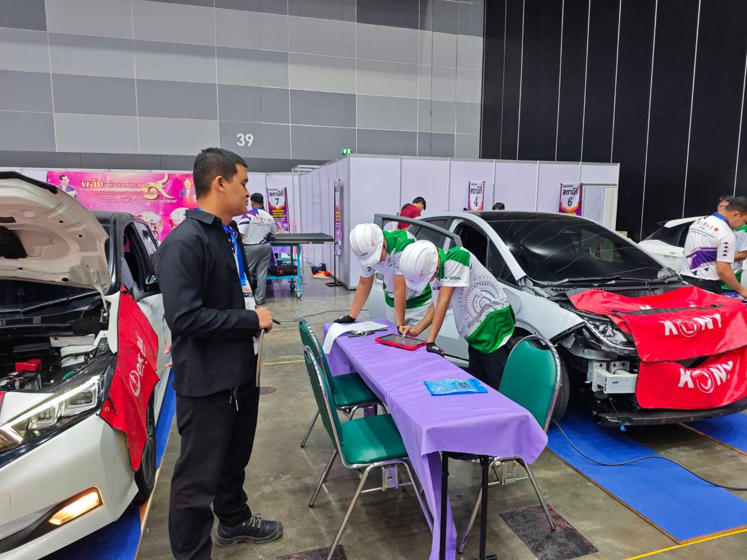 โดยนิสิตสาขาวิศวกรรมไฟฟ้า ได้แก่ นายอาทิติพงษ์ สังข์ทอง และ นายธนวัฒน์ ปารมี สามารถคว้ารางวัลอันดับที่ 4 จากการแข่งขันประเภทที่ 7 ได้สำเร็จ ซึ่งถือเป็นผลลัพธ์แห่งความมุ่งมั่นตั้งใจและการนำองค์ความรู้ทางวิศวกรรมไฟฟ้ามาประยุกต์ใช้ในการแก้ปัญหาจริงอย่างมีประสิทธิภาพ ทั้งนี้การแข่งขันในประเภทดังกล่าวเน้นทักษะหลักด้านการบำรุงรักษา การตรวจวัดอุปกรณ์ และการวิเคราะห์ปัญหาของยานยนต์ไฟฟ้า (EV) โดยใช้อุปกรณ์เฉพาะทาง อาทิ เครื่องมือวัดทางไฟฟ้า รถยนต์ไฟฟ้า เครื่องสแกนเนอร์วิเคราะห์ปัญหา และเครื่องมือ PPE เพื่อเสริมสร้างศักยภาพของนิสิตให้เป็น ช่างเทคนิคและวิศวกรรุ่นใหม่ ที่มีสมรรถนะตรงตามความต้องการของภาคอุตสาหกรรมในยุค อุตสาหกรรม 4.0