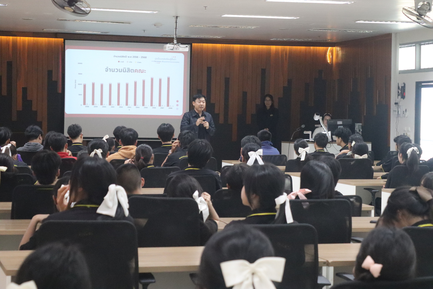 ในการนี้ ได้รับเกียรติจาก รองศาสตราจารย์ ดร.ณัฐพงศ์ ดำรงวิริยะนุภาพ คณบดีคณะวิศวกรรมศาสตร์ ร่วมให้การต้อนรับ พร้อมบรรยายแนะนำภาพรวมของคณะ หลักสูตรการจัดการเรียนการสอนในสาขาวิชาต่าง ๆ แนวทางการพัฒนานิสิตตามกรอบมาตรฐานคุณวุฒิระดับอุดมศึกษา รวมถึงแนวโน้มทางการศึกษาและเส้นทางอาชีพด้านวิศวกรรมศาสตร์ในอนาคต