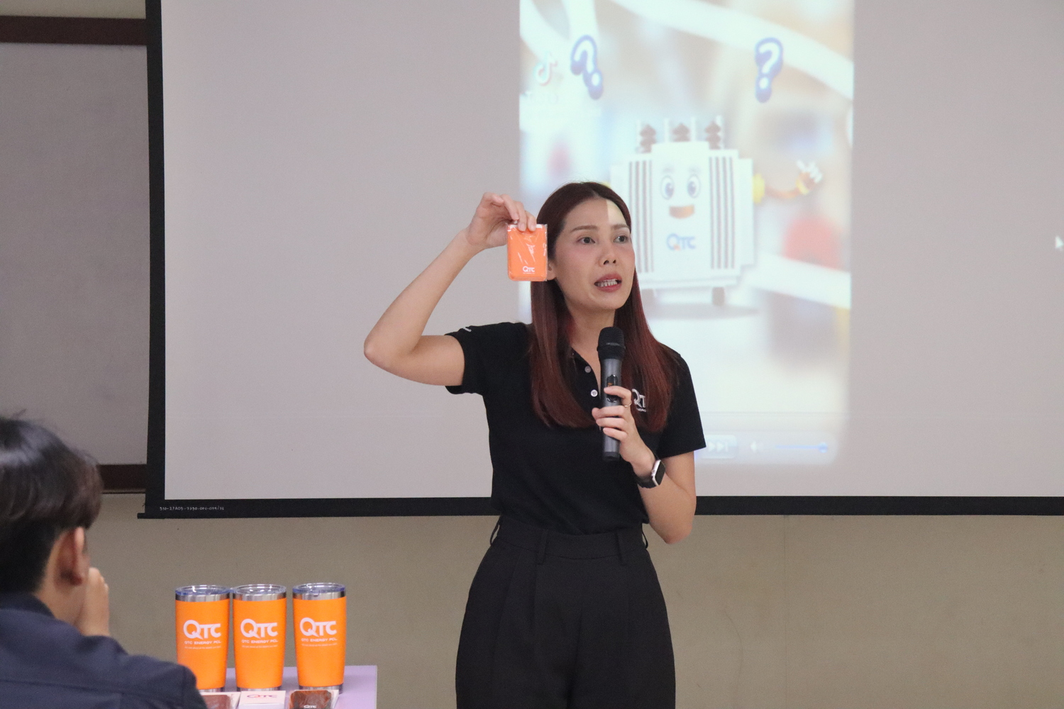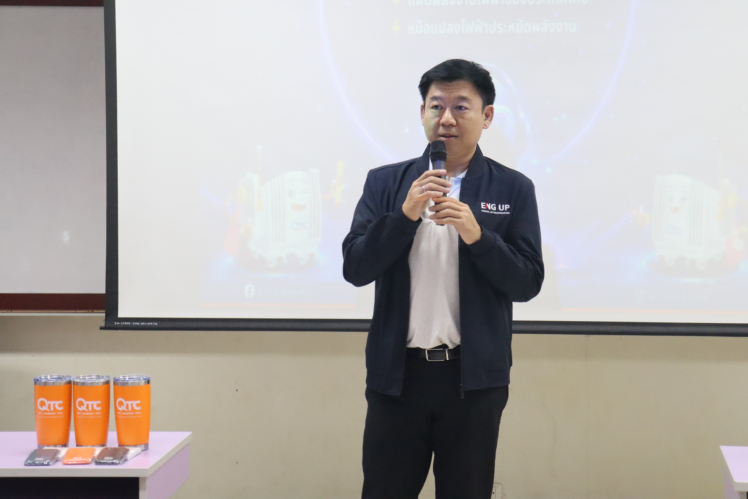 กิจกรรมดังกล่าวยังได้รับเกียรติจาก คุณธนาวัฒน์ คงเนียม (Domestic Sales Manager, QTC Energy POL) เป็นวิทยากรบรรยายพิเศษ แนะนำบทบาท ภารกิจ และทิศทางการดำเนินงานของ บริษัท คิวทีซี เอนเนอร์ยี่ จำกัด (มหาชน) ซึ่งเป็นองค์กรชั้นนำด้านการผลิตหม้อแปลงไฟฟ้าและอุปกรณ์ระบบพลังงานของประเทศ พร้อมถ่ายทอดองค์ความรู้เชิงวิชาการควบคู่ประสบการณ์จากภาคอุตสาหกรรมจริง ผ่านหัวข้อการบรรยายที่ครอบคลุมและทันสมัย อาทิ