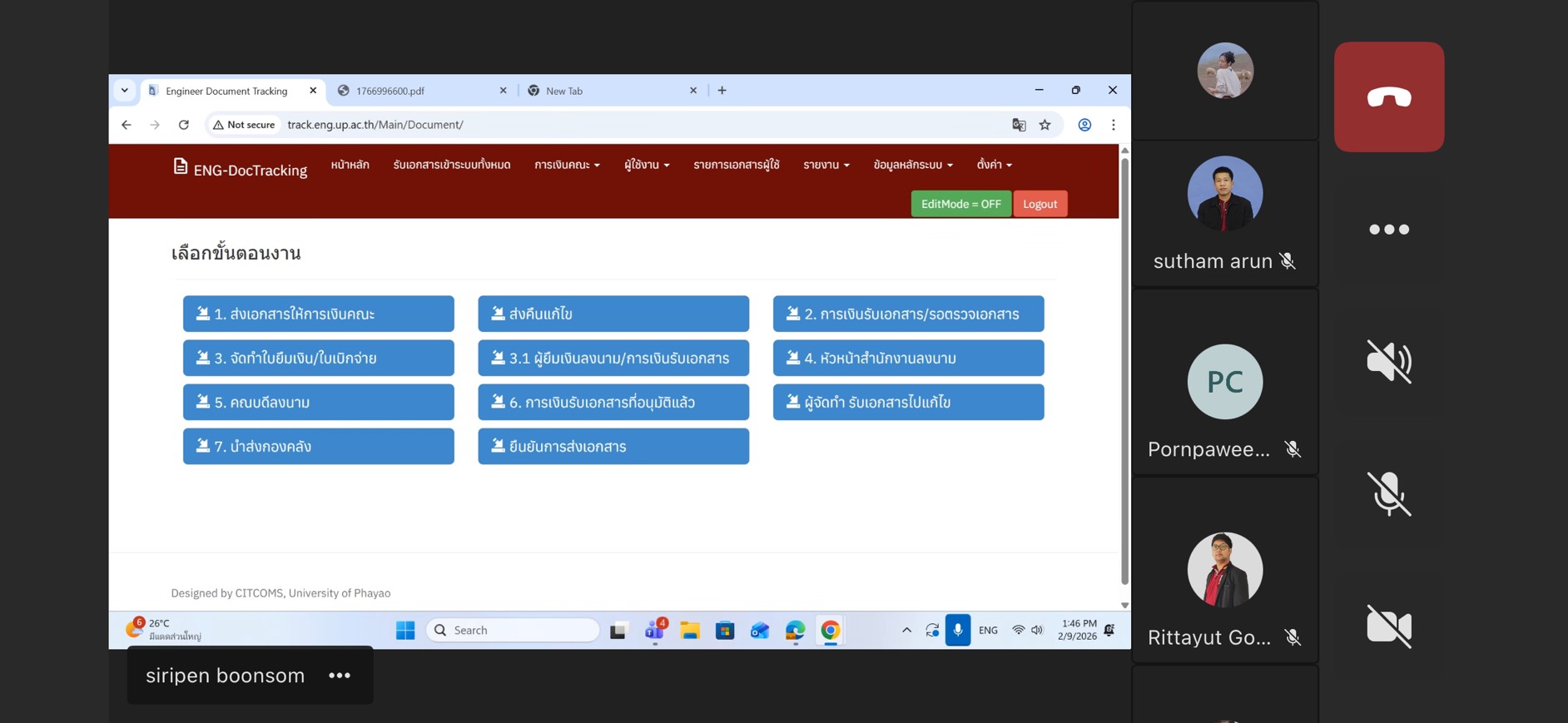 เมื่อวันที่ 9 กุมภาพันธ์ 2569 ที่ผ่านมา คณะวิศวกรรมศาสตร์ มหาวิทยาลัยพะเยา โดยนางสาวศิริเพ็ญ บุญสม นักวิชาการเงินและบัญชี ร่วมกับ ว่าที่ ร.ต.หญิงสุพัตรา ใจมูลมั่ง นักวิชาการคอมพิวเตอร์ ได้จัด “อบรมการใช้ระบบติดตามเอกสารการเงินของคณะวิศวกรรมศาสตร์” สำหรับคณาจารย์และบุคลากรภายในคณะ ณ ห้องประชุมคณะฯ EN1104 โดยได้รับเกียรติจาก ผู้ช่วยศาสตราจารย์ ดร.อภิชาต บัวกล้า รองคณบดีฝ่ายบริหารและกิจการพิเศษ เป็นประธานในพิธีเปิดการอบรม