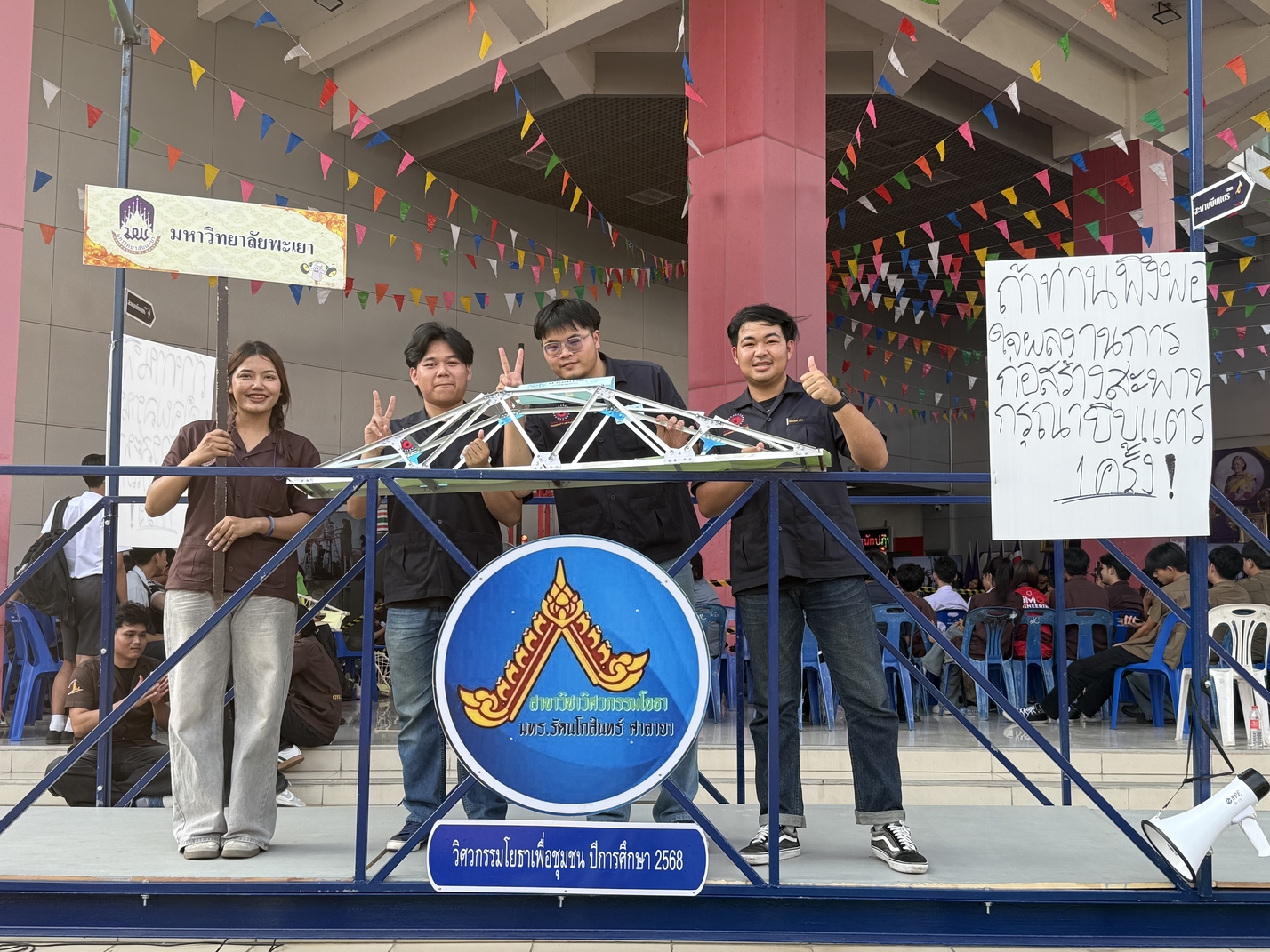 สาขาวิชาวิศวกรรมโยธา คณะวิศวกรรมศาสตร์ มหาวิทยาลัยพะเยา ส่งตัวแทนนิสิตเข้าร่วม “การแข่งขันเพื่อสร้างสรรค์วิชาการด้านโครงสร้าง สายงานวิศวกรรมโยธา ชิงแชมป์ประเทศไทย ประจำปี 2569 ชิงถ้วยรางวัลพระราชทานจาก สมเด็จพระกนิษฐาธิราชเจ้า กรมสมเด็จพระเทพรัตนราชสุดาฯ สยามบรมราชกุมารี โดยเข้าร่วมแข่งขันในประเภทโครงสร้างไม้ไอศกรีม (ครั้งที่ 18) และโครงสร้างไม้และเหล็ก (ครั้งที่ 10)” ระหว่างวันที่ 12–13 กุมภาพันธ์ 2569 ณ มหาวิทยาลัยเทคโนโลยีราชมงคลรัตนโกสินทร์ พื้นที่ศาลายา
