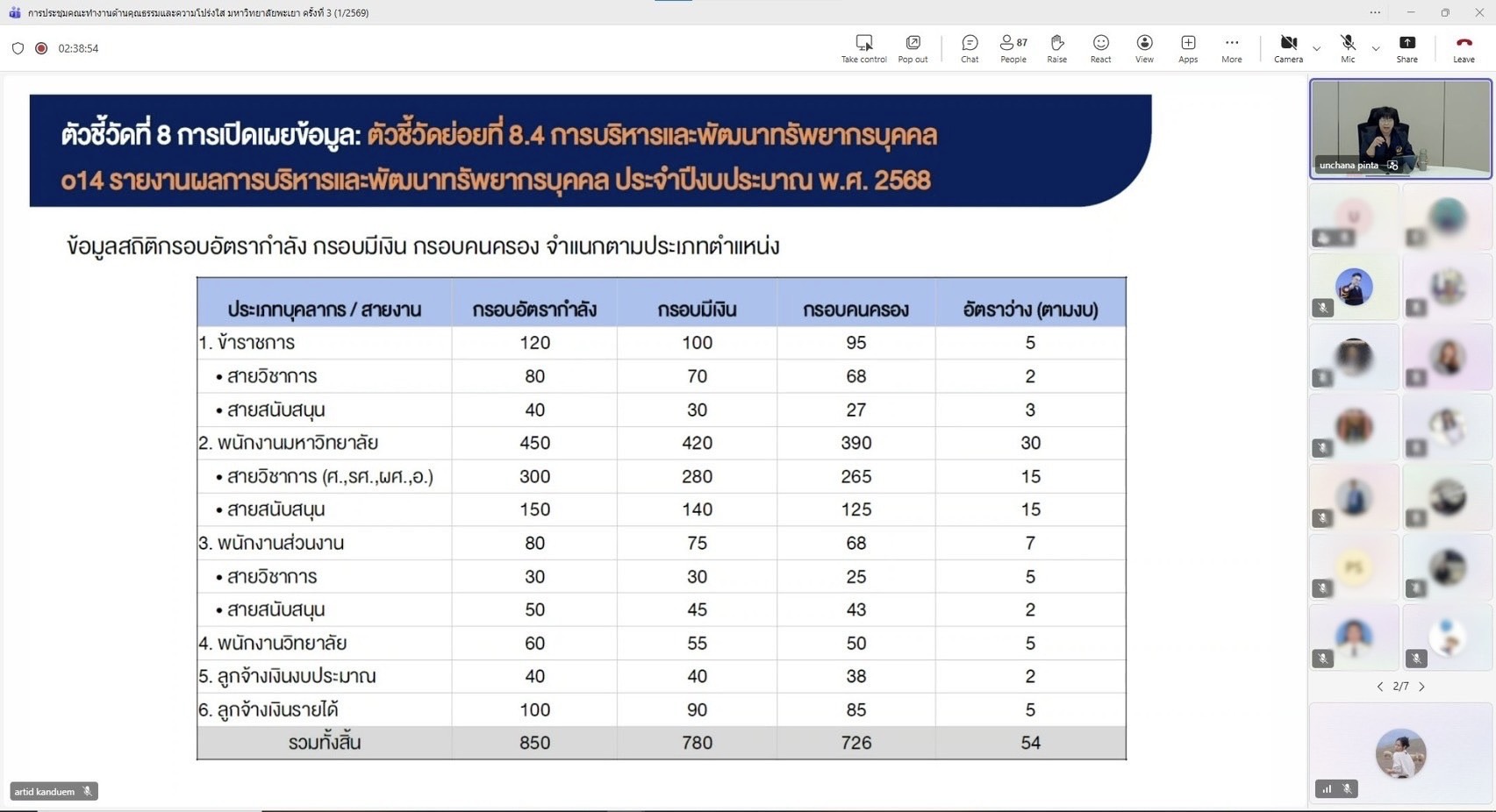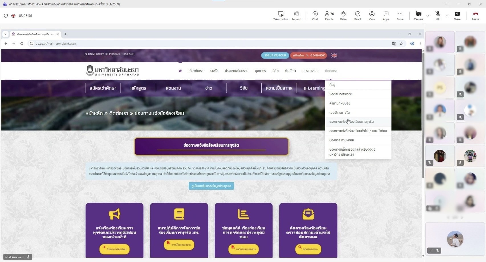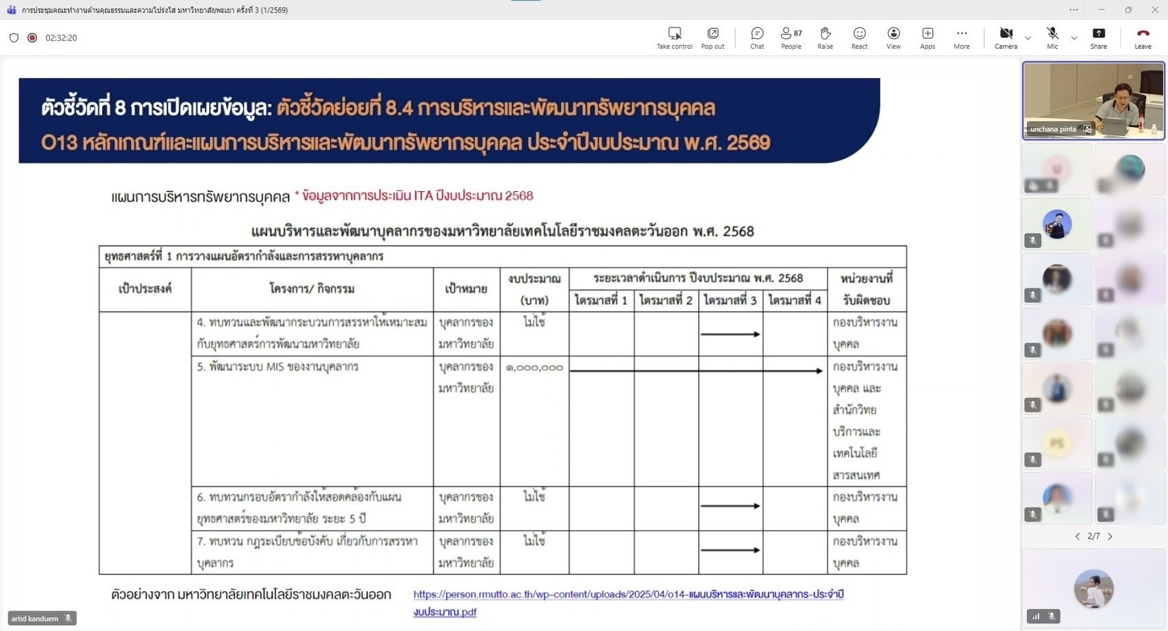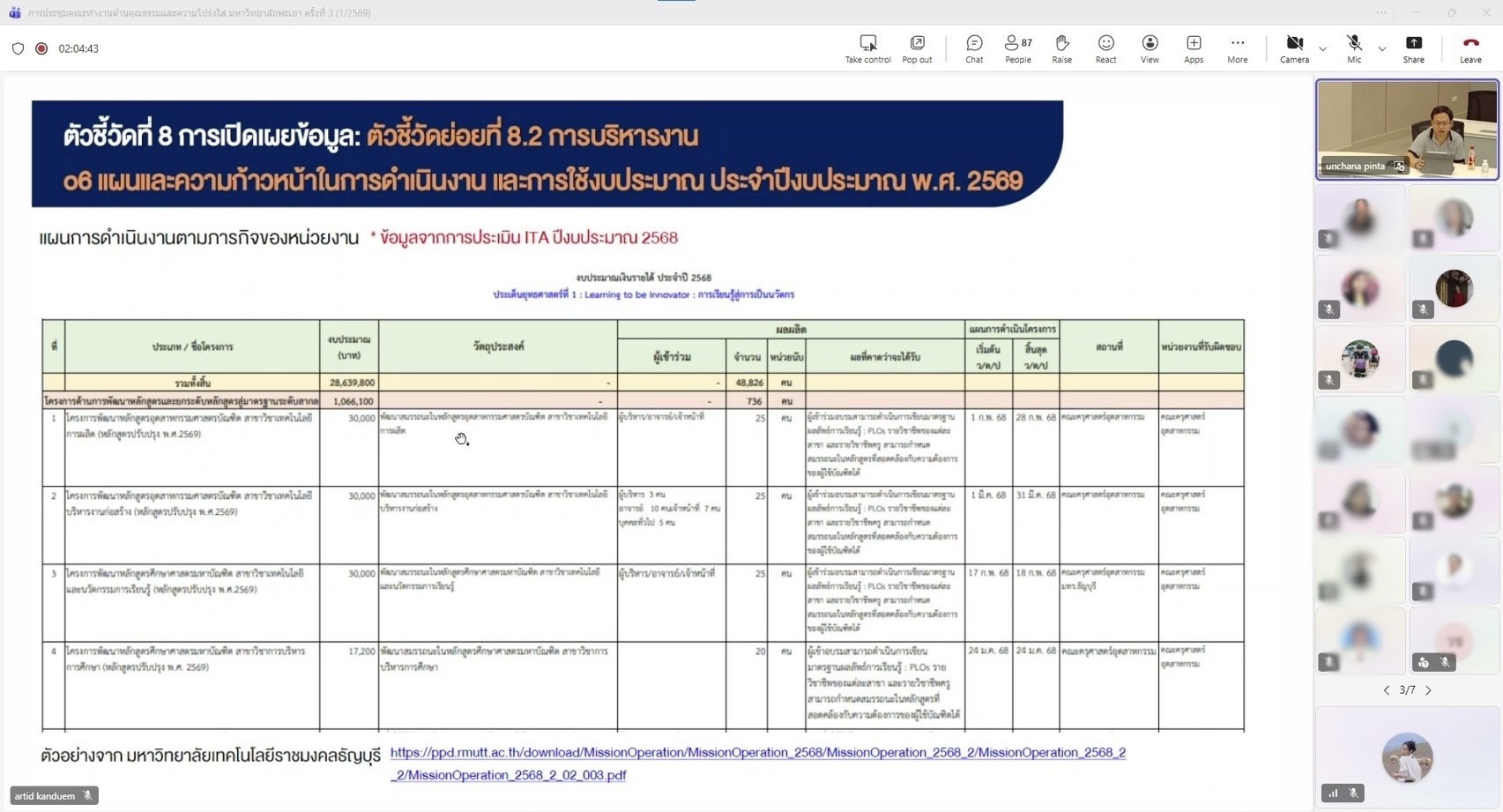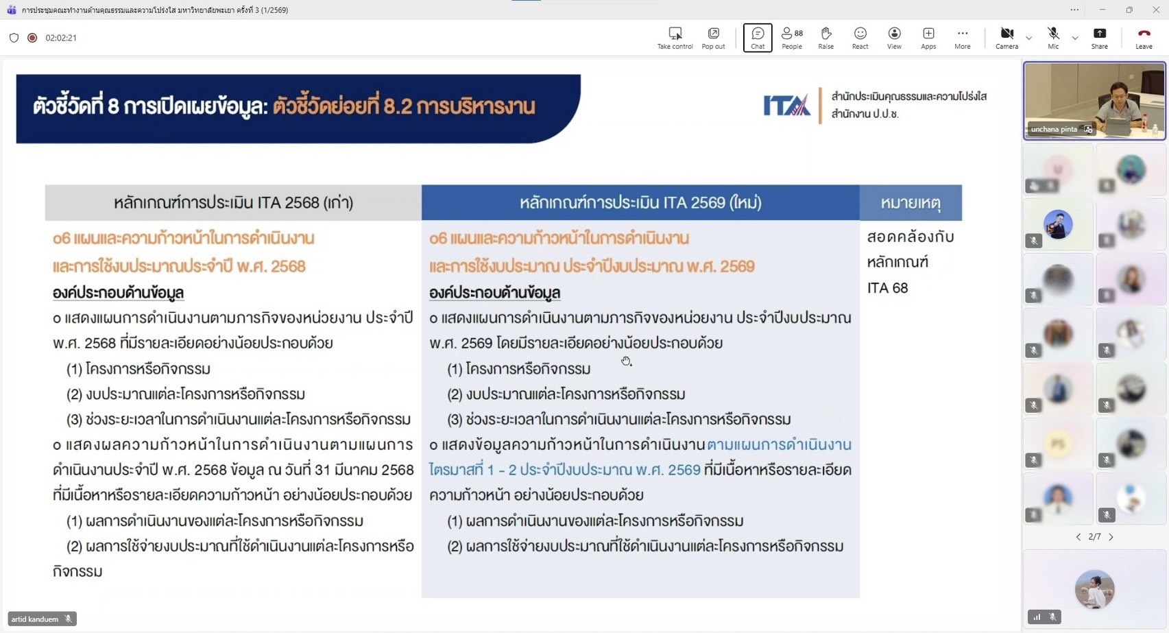 การประชุมดังกล่าวจัดขึ้นในรูปแบบออนไลน์ผ่านระบบ Microsoft Teams โดยมีกองแผนงาน งานสนับสนุนการบริหารความเสี่ยงและความโปร่งใส เป็นหน่วยงานหลักในการรับผิดชอบการติดตาม กำกับ และประเมินผลการดำเนินงาน เพื่อให้การขับเคลื่อนองค์กรเป็นไปตามหลักธรรมาภิบาล มีความโปร่งใส ตรวจสอบได้ และสอดคล้องกับเกณฑ์การประเมินในระดับชาติอย่างมีประสิทธิภาพและยั่งยืน