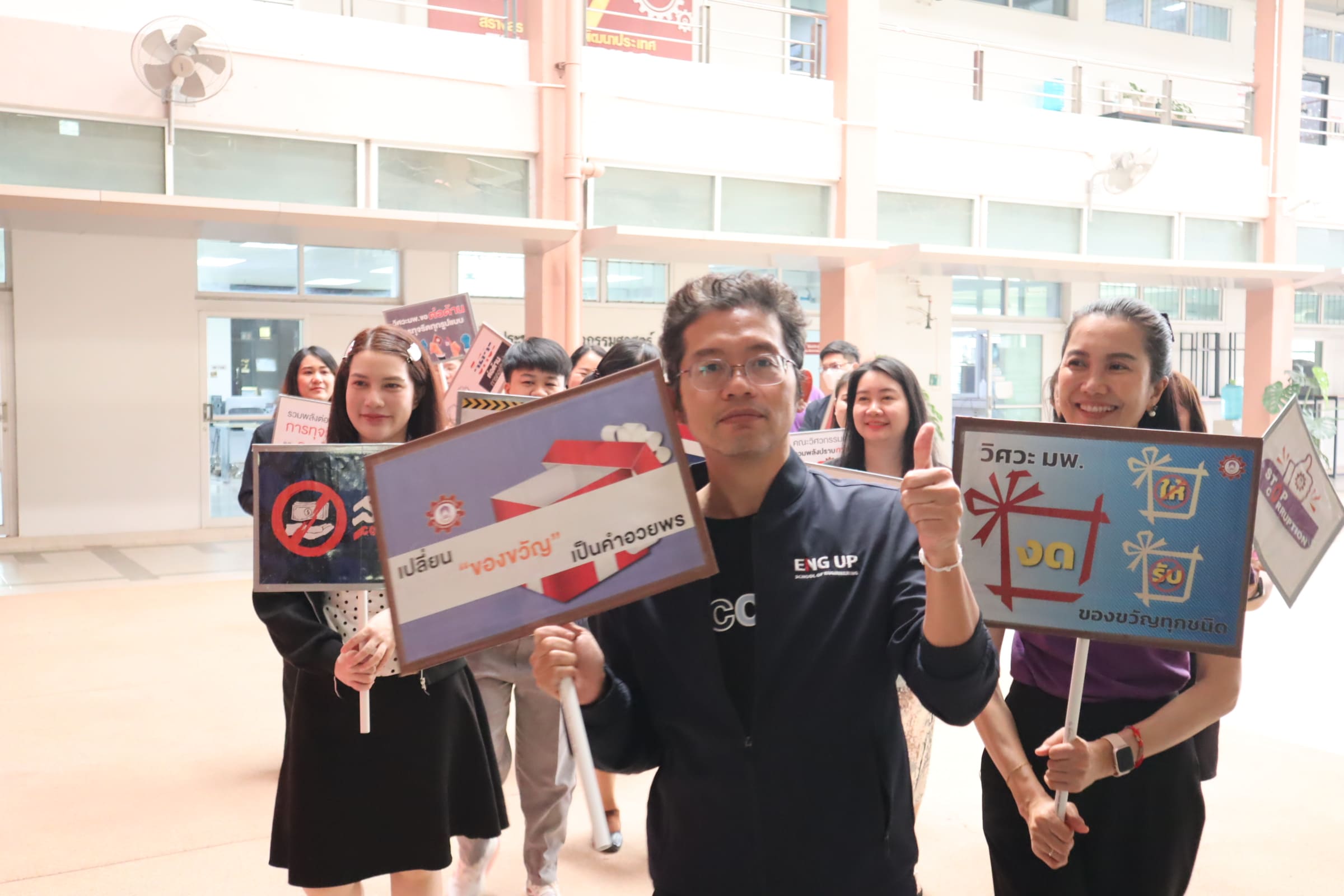 นอกจากนี้ ยังได้นำทีมบุคลากรคณะวิศวกรรมศาสตร์ร่วมกิจกรรมเดินรณรงค์และแสดงสัญลักษณ์ เพื่อส่งเสริมคุณธรรม จริยธรรม และความโปร่งใสในการดำเนินงานของหน่วยงาน สอดคล้องตามแนวทางการประเมินคุณธรรมและความโปร่งใสในการดำเนินงานของหน่วยงานภาครัฐ ขับเคลื่อนนโยบาย No Gift Policy ณ บริเวณอาคาร EN 1 – 2