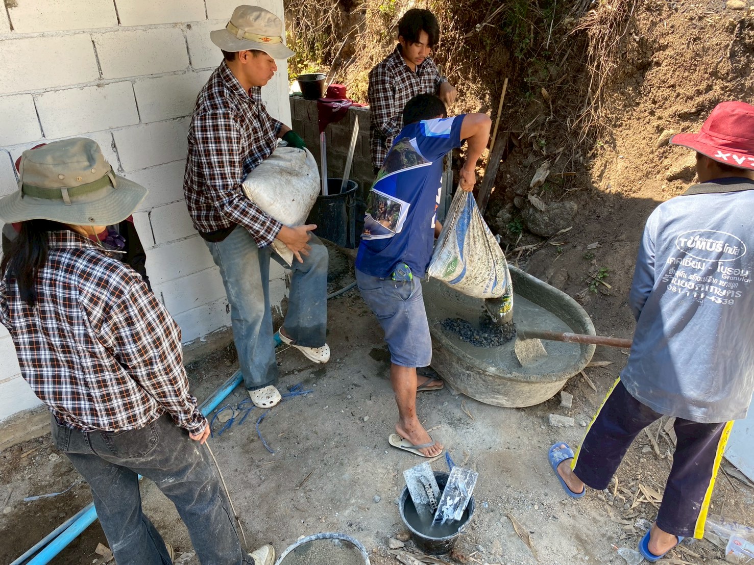 6.การก่อผนังและปรับภูมิทัศน์บริเวณโรงอาหาร