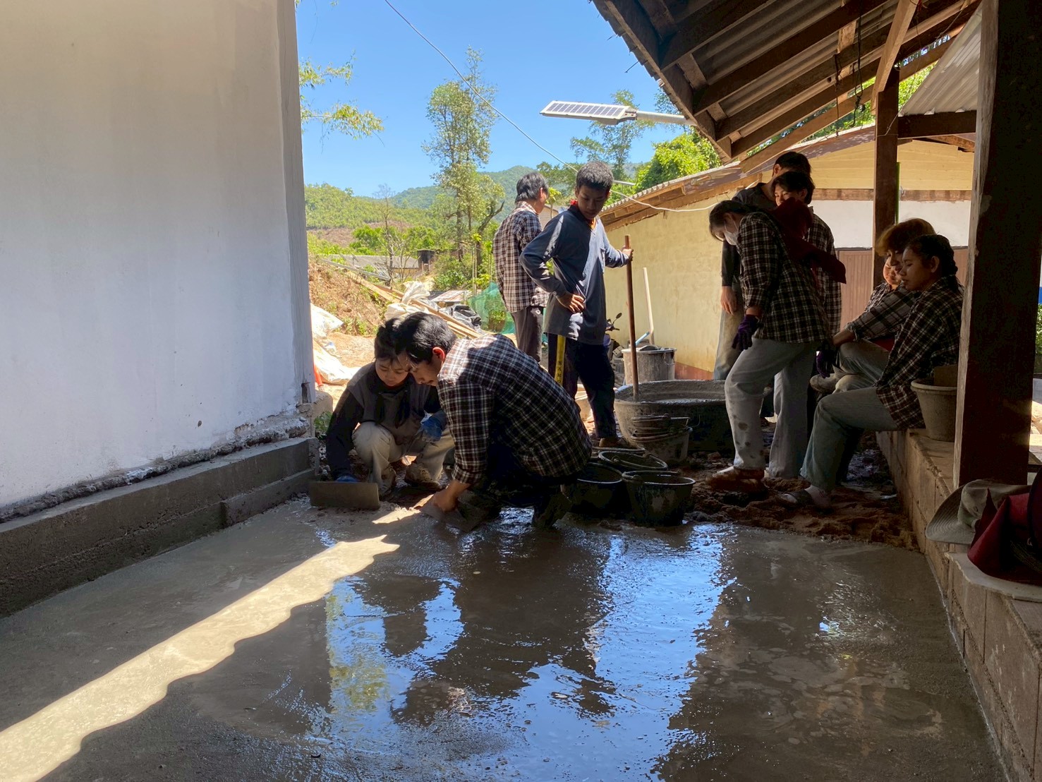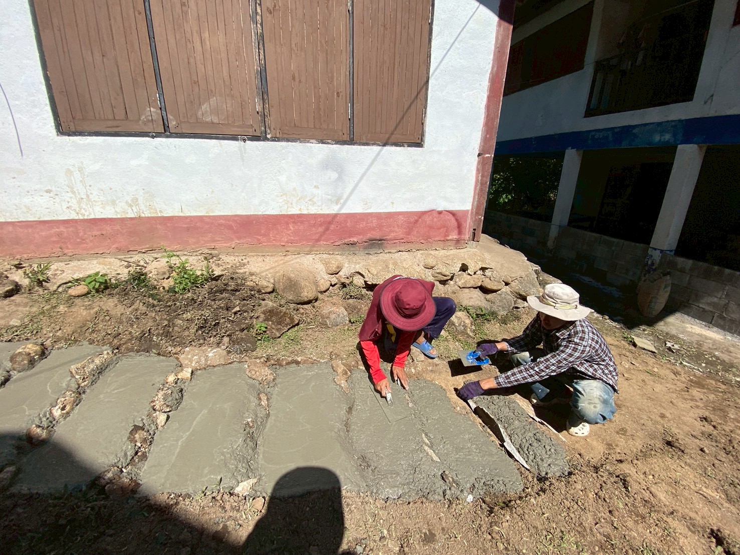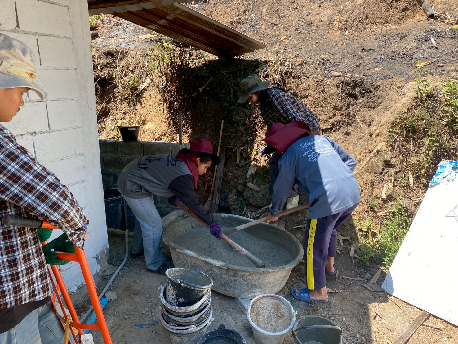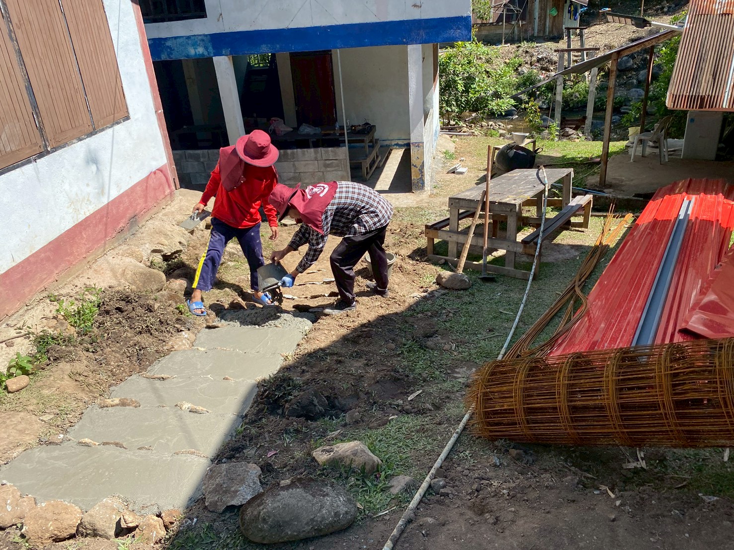 3.การเทพื้นคอนกรีตเสริมเหล็กบริเวณด้านหน้าและโดยรอบโรงนอนหญิง