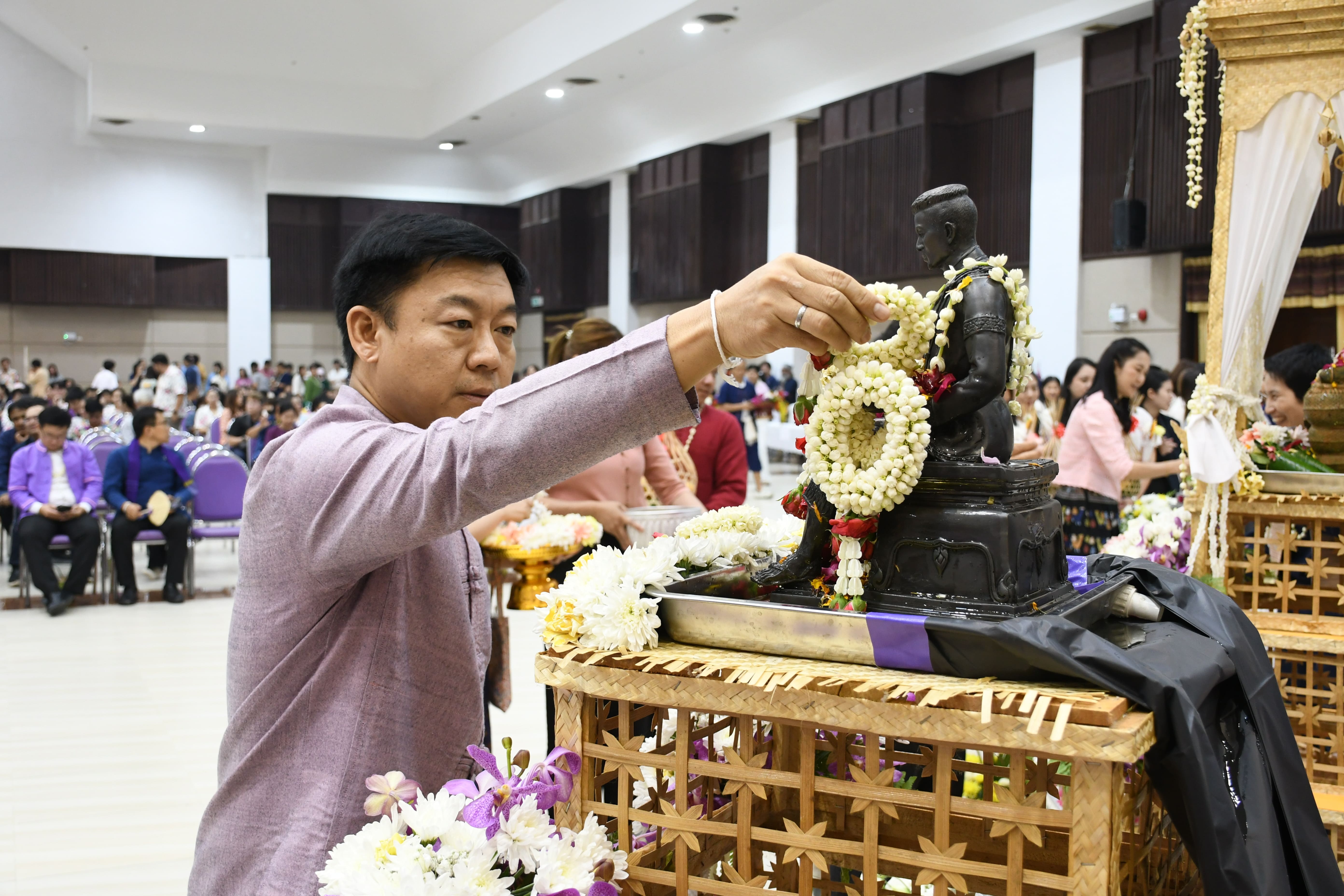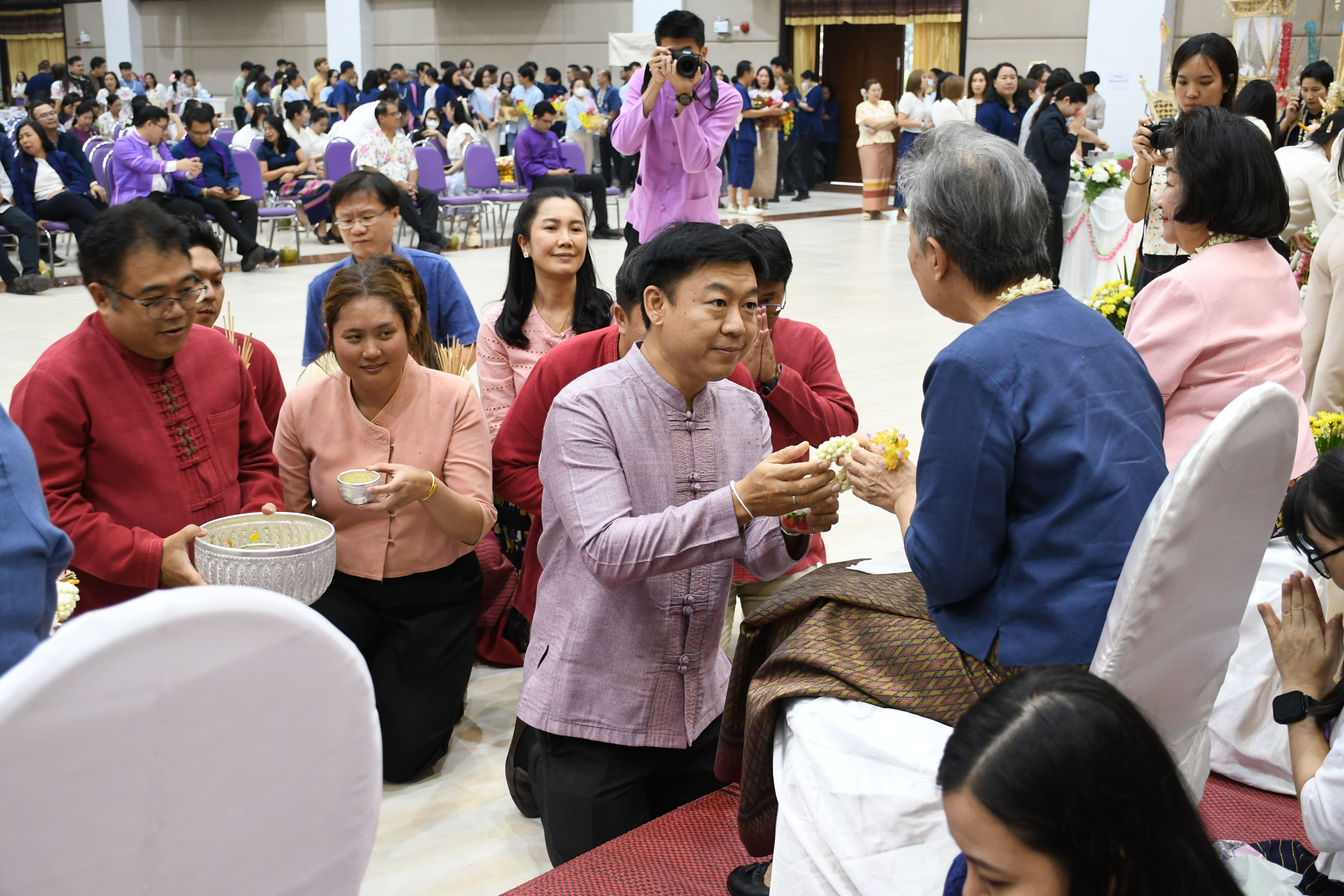 จากนั้น รองศาสตราจารย์ ดร.ณัฐพงศ์ ดำรงวิริยะนุภาพ คณบดีคณะวิศวกรรมศาสตร์ มหาวิทยาลัยพะเยา พร้อมด้วยคณะผู้บริหาร ได้นำบุคลากรเข้าร่วมงาน “ประเพณีปี๋ใหม่เมือง มหาวิทยาลัยพะเยา ประจำปี พ.ศ. 2569” ณ หอประชุมพญางำเมือง ซึ่งจัดโดยศูนย์ศิลปะและวัฒนธรรมล้านนา มหาวิทยาลัยพะเยา โดยภายในงานได้ร่วมประกอบพิธีสรงน้ำและถวายพวงมาลัยแด่พระพุทธภุชคารักษ์ และพระบรมรูปสมเด็จพระนเรศวรมหาราช ตลอดจนเข้าร่วมพิธีสระเกล้าดำหัว รองศาสตราจารย์ ดร.สุภกร พงศบางโพธิ์ อธิการบดี และผู้อาวุโสของมหาวิทยาลัยพะเยา เพื่อร่วมสืบสานประเพณีปี๋ใหม่เมืองหรือเทศกาลสงกรานต์ ถือเป็นการแสดงออกถึงความเคารพนอบน้อมต่อผู้ใหญ่ อันแสดงออกถึงความกตัญญูกตเวทีต่อคณะผู้บริหารและผู้อาวุโส